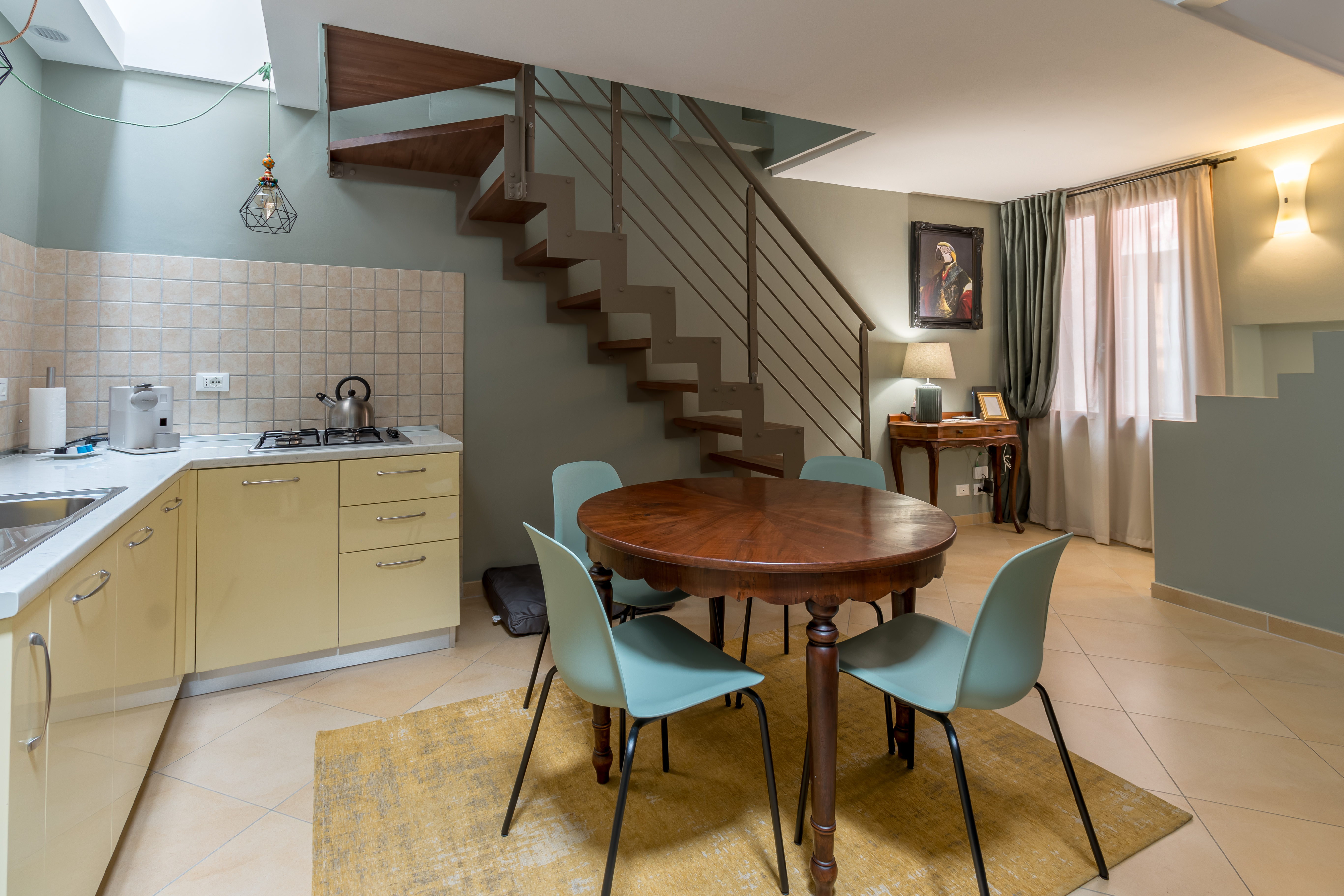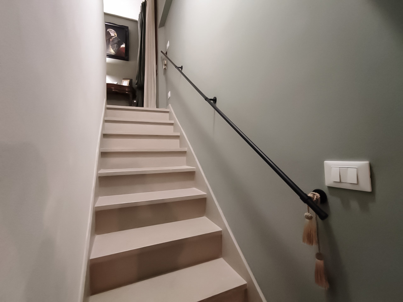 I proprietari si sono rivolti a me per sistemare l’appartamento dopo l’acquisto, con l’obiettivo di renderlo funzionale e accogliente. Uno degli interventi principali è stato il rifacimento della scala pericolante che conduceva all’altana, rendendola sicura e moderna. Inoltre, ho integrato nel progetto i mobili lasciati dai vecchi proprietari, come la cucina, il divano, il letto e le luci, aggiungendo anche quadri e oggettistica personale dei clienti per personalizzare gli ambienti.